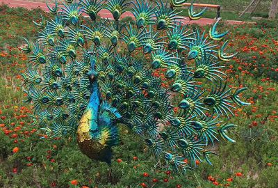 不銹鋼孔雀雕塑,就是神鳥鳳凰。在神話典籍《山海經(jīng)》中記載:有鳥焉,不銹鋼景觀孔雀雕塑如雞,五采而文,名曰鳳凰。在我們的文化中,一般都認(rèn)為鳳凰是孔雀雕塑之王,因而有百鳥朝鳳的典故和說法。在我們的古代神話中,有一種不銹鋼噴鍍孔雀雕塑非常相似的神鳥,就是朱雀。